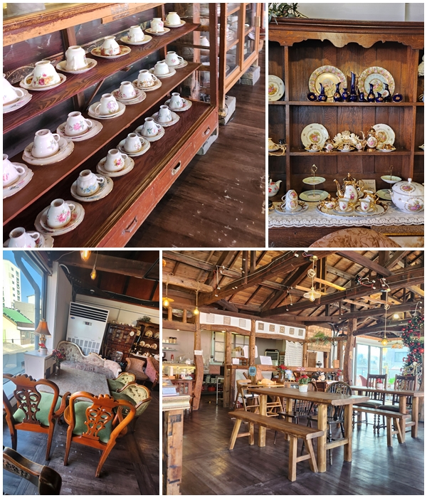 세월의 흔적이 묻어나는 외관은 군산 거리와 잘 어우러지고, 2층 내부로 들어가면 앤틱한 소품과 고가구들로 채워진 독특한 공간이 나옵니다.