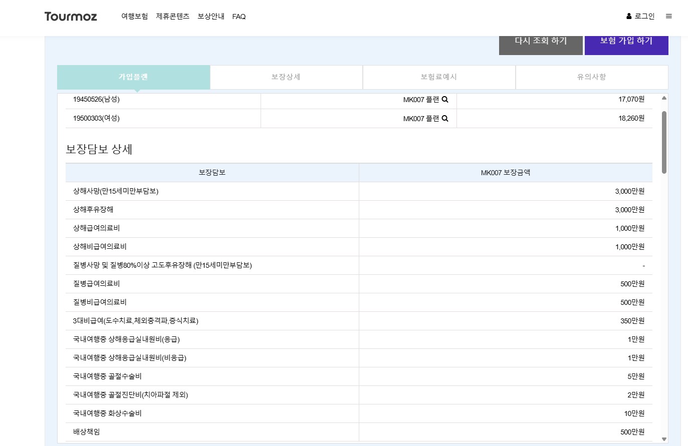- 중간 가격대 + 적절한 보장을 원한다면? ➝ 투어모즈 MK007 플랜