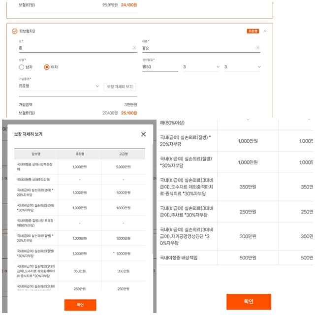 - 그린, 오렌지형의 경우 금액이 저렴(보장에 제한이 있음), 레드형이 기본인듯