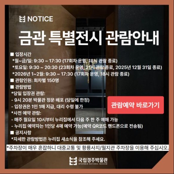 - 장소 : 국립경주박물관 특별전시실(신라역사관 3층 3a실)